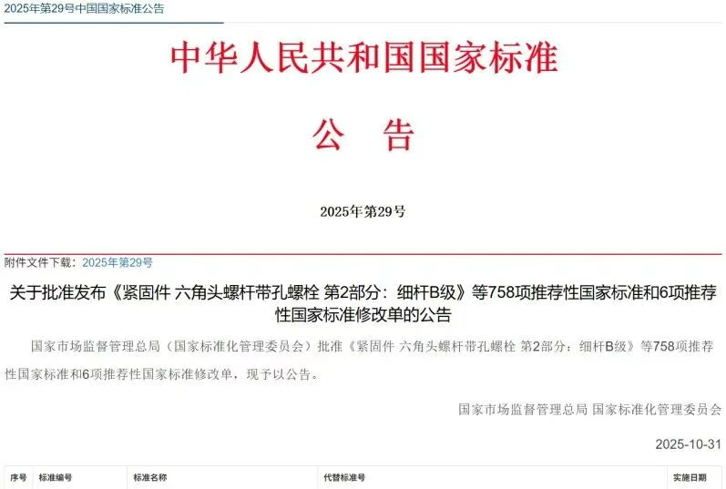 国家市场监督管理总局(国家标准化管理委员会)发布2025年第29号国家标准公告。