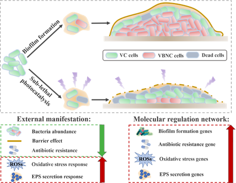 我院硕士生陈敏等在ACB杂志上发表亚致死光催化胁迫下生物膜形成的应激响应机制的最新学术论文