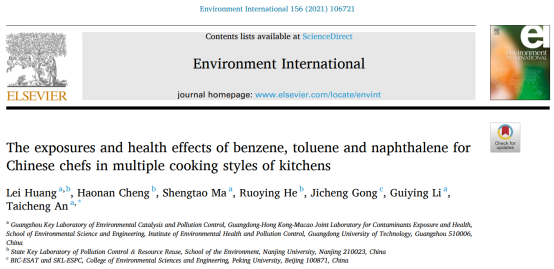 近日,基于广州市环境催化与污染控制重点实验室资助下的合作研究项目,广东工业大学环境健康与污染控制研究院、环境科学与工程学院安太成教授团队与南京大学黄蕾教授团队合作的题为《The exposures and health effects of benzene, toluene and naphthalene for Chinese chefs in multiple cooking styles of kitchens》的学术论文在Environment International (2021, 156:106721)杂志上接受发表。论文的第一作者为黄蕾教授,通讯作者为安太成教授。该研究重点关注厨师这一职业暴露人群,选取了三种经典的中式烹饪风格蒸、炸、烤的厨师作为研究对象,对烹饪过程中排放的几种典型芳香烃(苯、甲苯和萘)的外暴露和内暴露水平、健康风险评估和影响等进行了系统分析研究。研究结果为厨师工作环境的职业暴露的健康评估提供数据支撑。