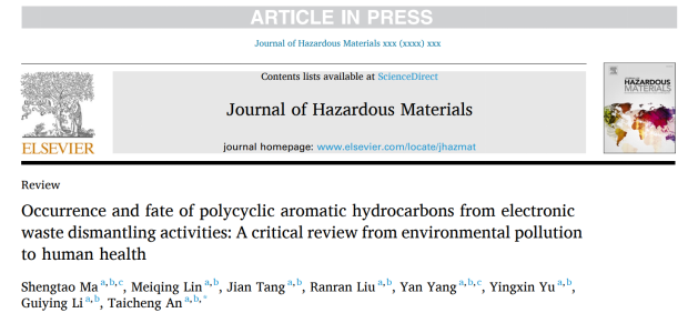 我院马盛韬博士等在JHM上发表《电子垃圾拆解活动造成的多环芳烃污染:从环境污染到潜在健康危害》的综述性论文