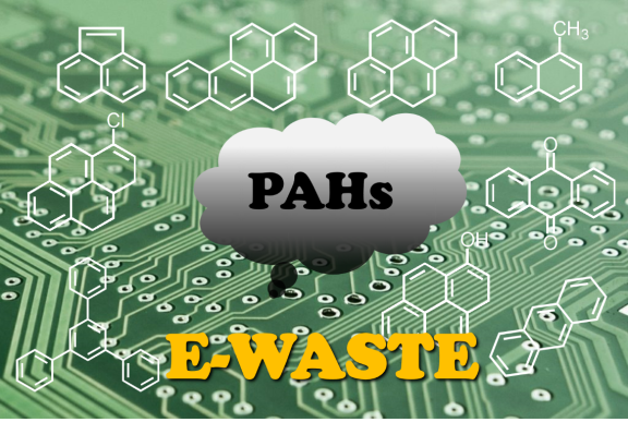 Electronic waste (e-waste) is one of the fastest-growing solid wastes and has become an urgent issue due to the potential adverse consequences of exposure to emitted toxic pollutants, especially for these occupational exposed workers and local residents. In this review, the environmental occurrences, emission characteristics, sources, and possible adverse effects of polycyclic aromatic hydrocarbons (PAHs) emitted from primitive e-waste dismantling activities are summarized. In general, the atmospheric levels of PAHs at typical e-waste sites, e.g., in Guiyu, China, have substantially decreased by more than an order of magnitude compared with levels a decade ago. The PAH concentrations in soil from old e-waste sites in China are also generally lower than those at newly emerged e-waste sites in India, Pakistan and Ghana. However, elevated concentrations of PAHs have been reported in human milk, hair and urine from the populations near these e-waste sites. Source apportionment both from bench-scale studies to field observations has demonstrated that the pyrolysis and combustion processing of electronic circuit board are mainly responsible for the emissions of various PAHs. In addition, some specific PAHs and their derivatives, such as triphenylbenzene, halogenated and oxygenated PAHs, have frequently been identified and could be considered as indicators in routine analysis in addition to the 16 U.S. EPA priority PAHs currently used.