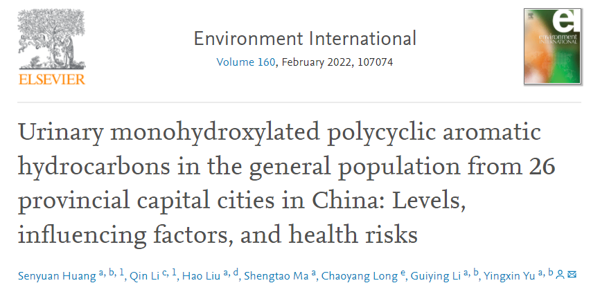 我院博士生黄森源等在Environment International杂志上发表中国26个省会城市普通人群尿液中羟基多环芳烃的浓度水平、影响因素及健康风险的最新学术论文