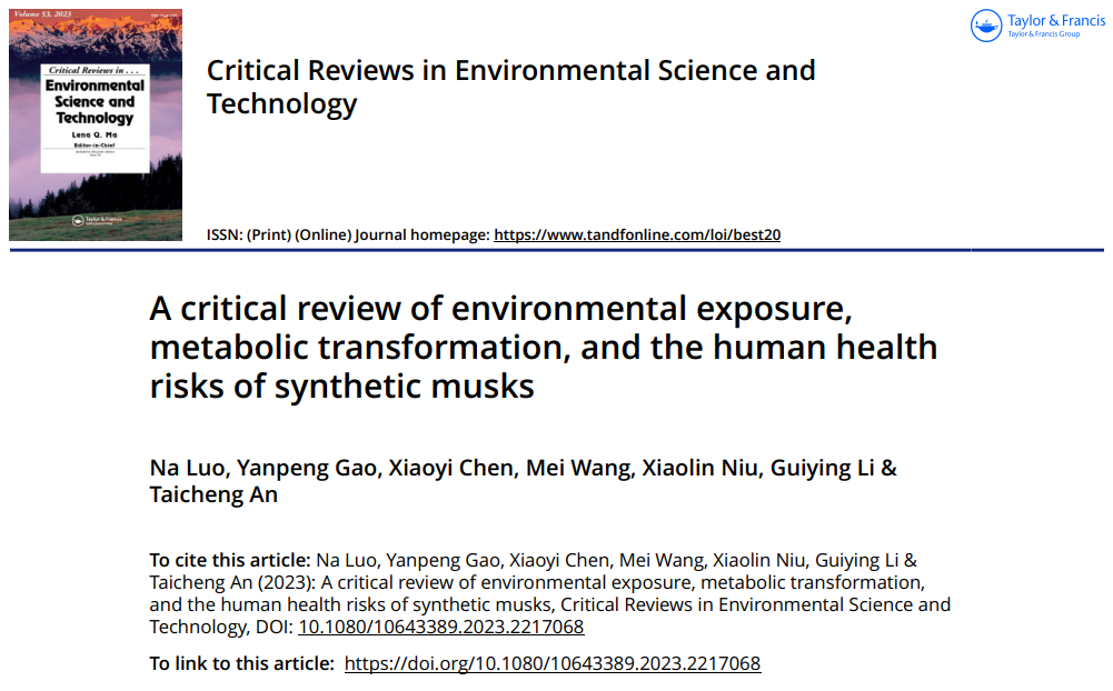 近日,广东工业大学环境健康与污染控制研究院、环境科学与工程学院安太成教授团队在国际期刊Critical Reviews in Environmental Science and Technology上发表题为《A critical review of environmental exposure, metabolic transformation, and the human health risks of synthetic musks》的综述论文 (https://doi.org/10.1080/10643389.2023.2217068)。论文的第一作者为博士生罗娜,通讯作者为安太成教授。
