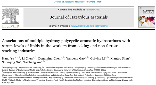 近日,广东工业大学环境健康与污染控制研究院、环境科学与工程学院安太成教授团队在焦化和有色金属冶炼行业工人中多种羟基多环芳烃与血清脂质水平的关联研究中取得最新研究进展,研究成果以《Associations of multiple hydroxy-polycyclic aromatic hydrocarbons with serum levels of lipids in the workers from coking and non-ferrous smelting industries (https://doi.org/10.1016/j.jhazmat.2024.134664)》为题发表在Journal of Hazardous Materials (2024, 473: 134664)期刊上,通讯作者为安太成教授和华中科技大学的沈先涛教授。