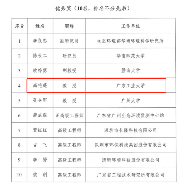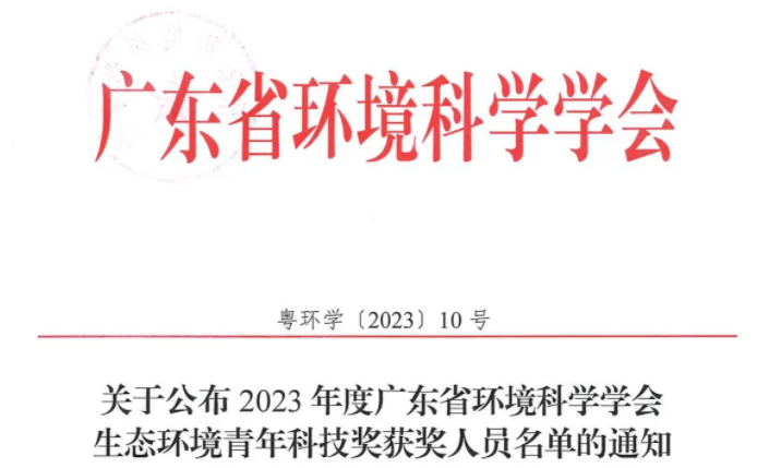近日,广东省环境科学学会公布了《2023年度广东省环境科学学会生态环境青年科技奖获奖人员名单》,共有15位入选获奖,其中金奖5名,优秀奖10名。我院高艳蓬教授荣获2023年度广东省环境科学学会生态环境青年科技奖(优秀奖)。